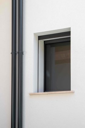 La residenza fa spazio ai monoblocchi Presystem di Alpac, in una soluzione prefabbricata ad alte prestazioni che integra in un unico elemento termoisolante sia avvolgibile che zanzariera. La fornitura ed installazione dei serramenti e dei monoblocchi con avvolgibile integrato è stata curata BT Glass, serramentista partner di Alpac, che ha assicurato una posa di alta precisione, tempi di cantiere certi e una perfetta continuità visiva tra tecnologia e architettura. Progettato su misura per ogni apertura, il monoblocco Presystem SPC è realizzato con materiali a elevata densità e bassa conducibilità termica, studiati per assicurare elevate prestazioni di isolamento termico e acustico, garantire un efficace contenimento dei consumi e mantenere un comfort abitativo costante in ogni stagione. L’integrazione della zanzariera e dell’avvolgibile coibentato all’interno dello stesso elemento consente sia una gestione agevolata del cantiere, sia una maggiore pulizia formale complessiva. L’installazione a scomparsa dei serramenti, realizzati con profili ridotti, enfatizza ulteriormente la purezza delle linee architettoniche, restituendo all’edificio una percezione di essenzialità e leggerezza.
