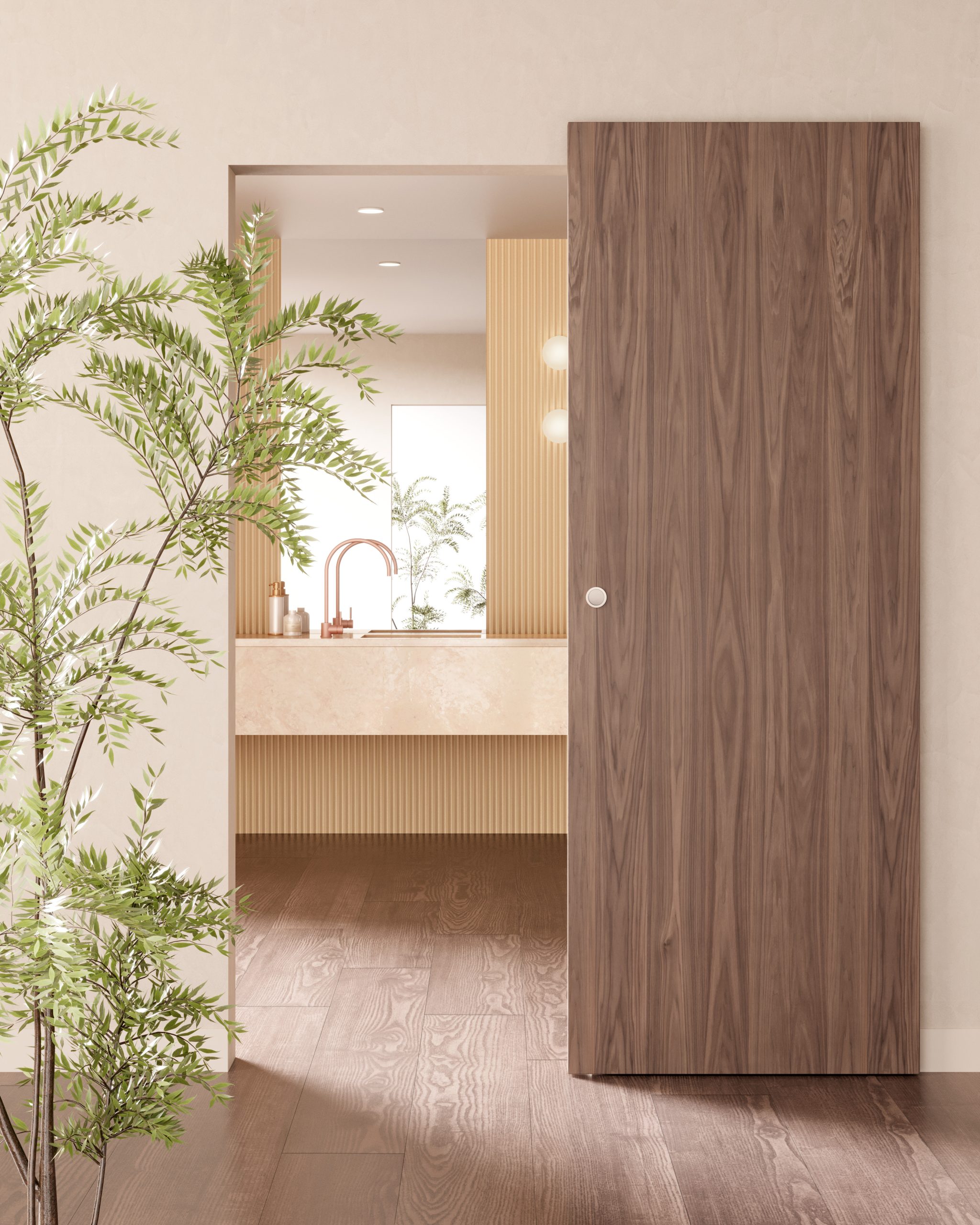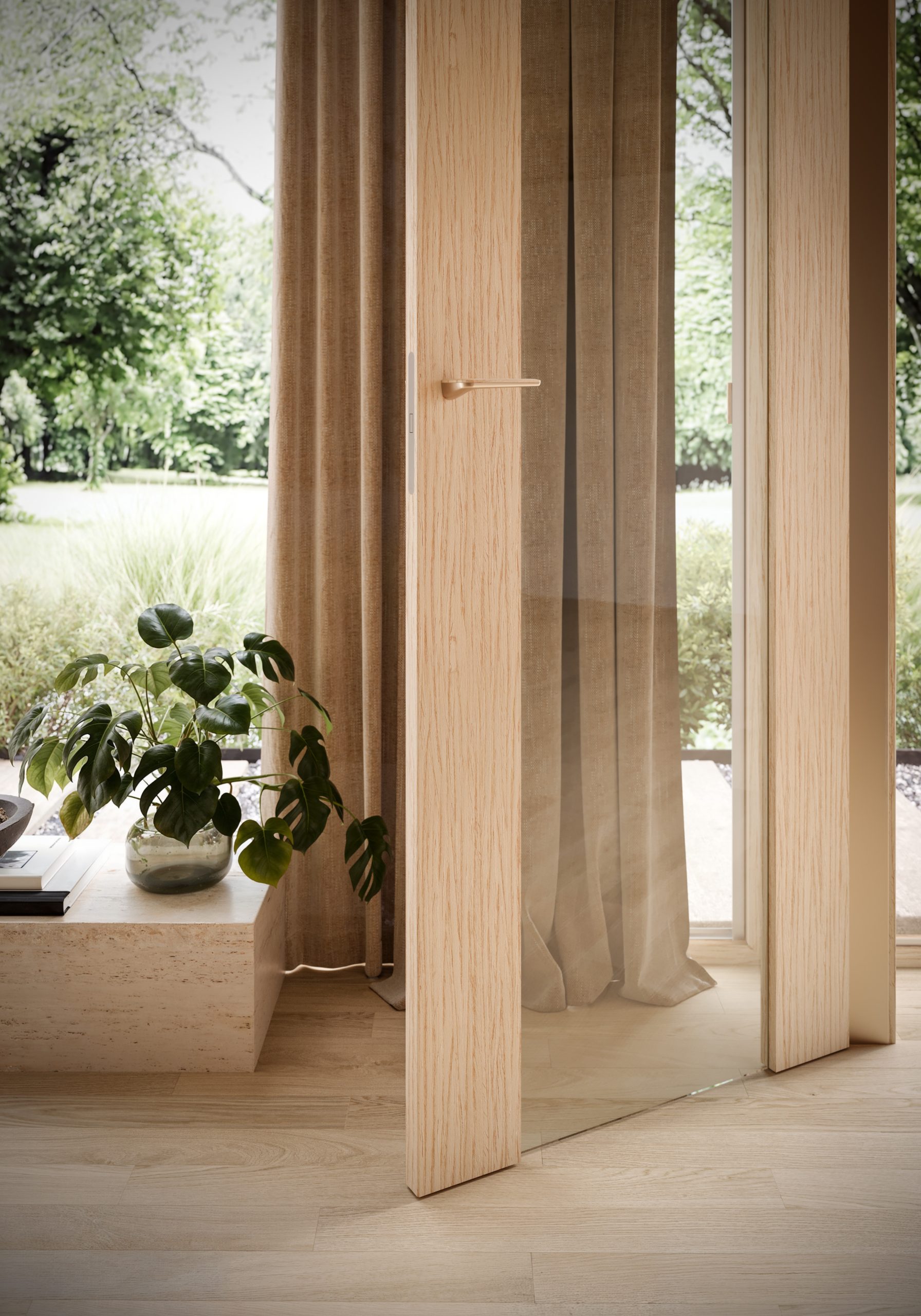 Effebiquattro, con Newport, offre anche la possibilità di inserire maniglie integrate, che riprendono la finitura del legno scelto per la porta. Grazie all’ampia gamma di aperture, materiali e finiture decorative, comprese quelle in vero legno, Newport rende possibile un alto grado di personalizzazione e si integra alla perfezione in ogni stile e ambiente.