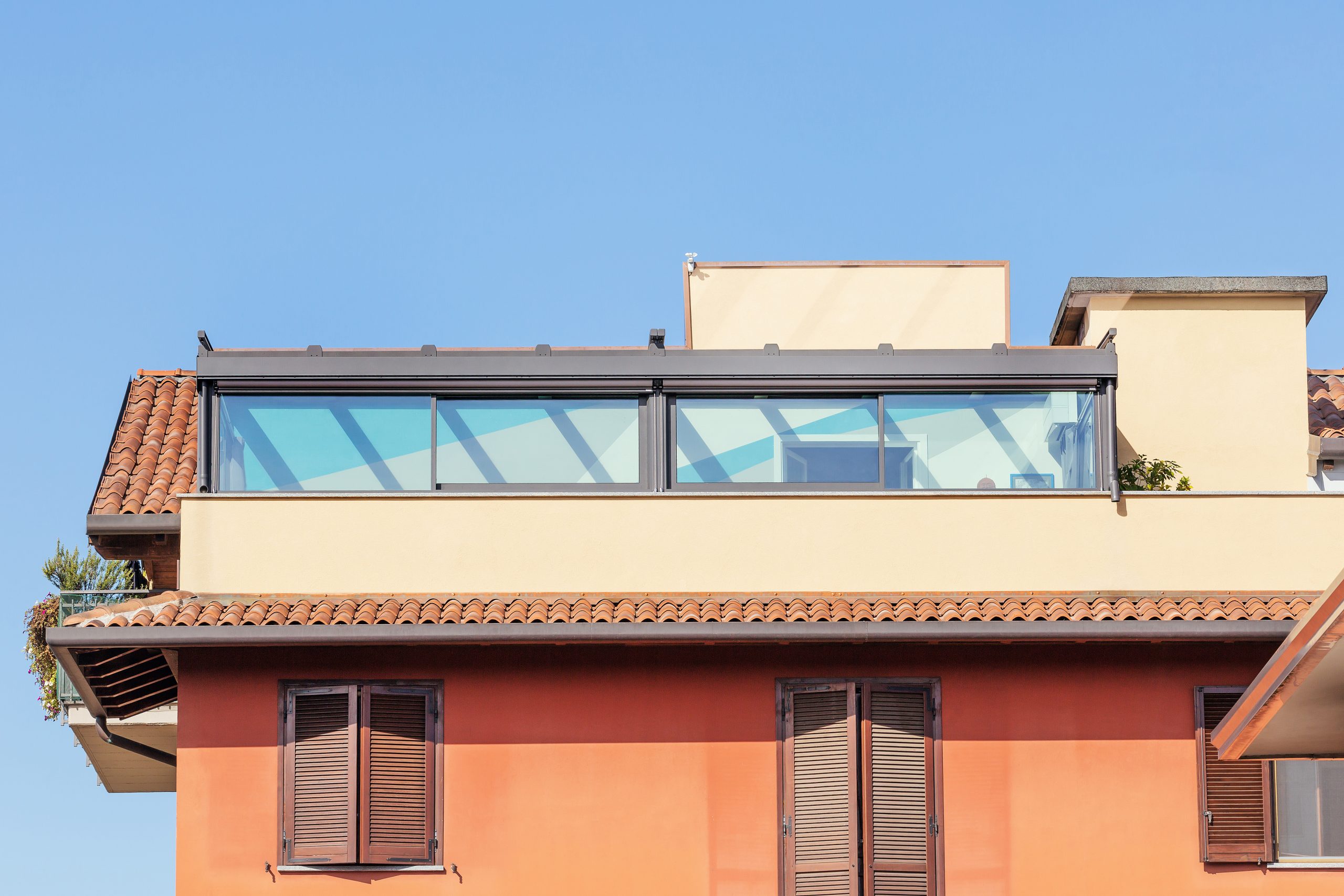 Schermature: Tende in copertura su tetto e su serramenti laterali con cassonetto integrato nella gronda