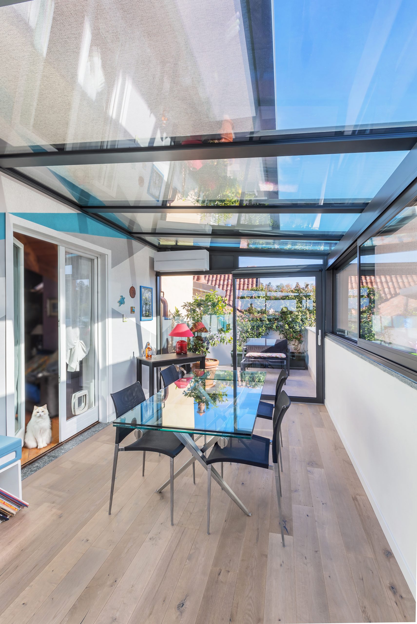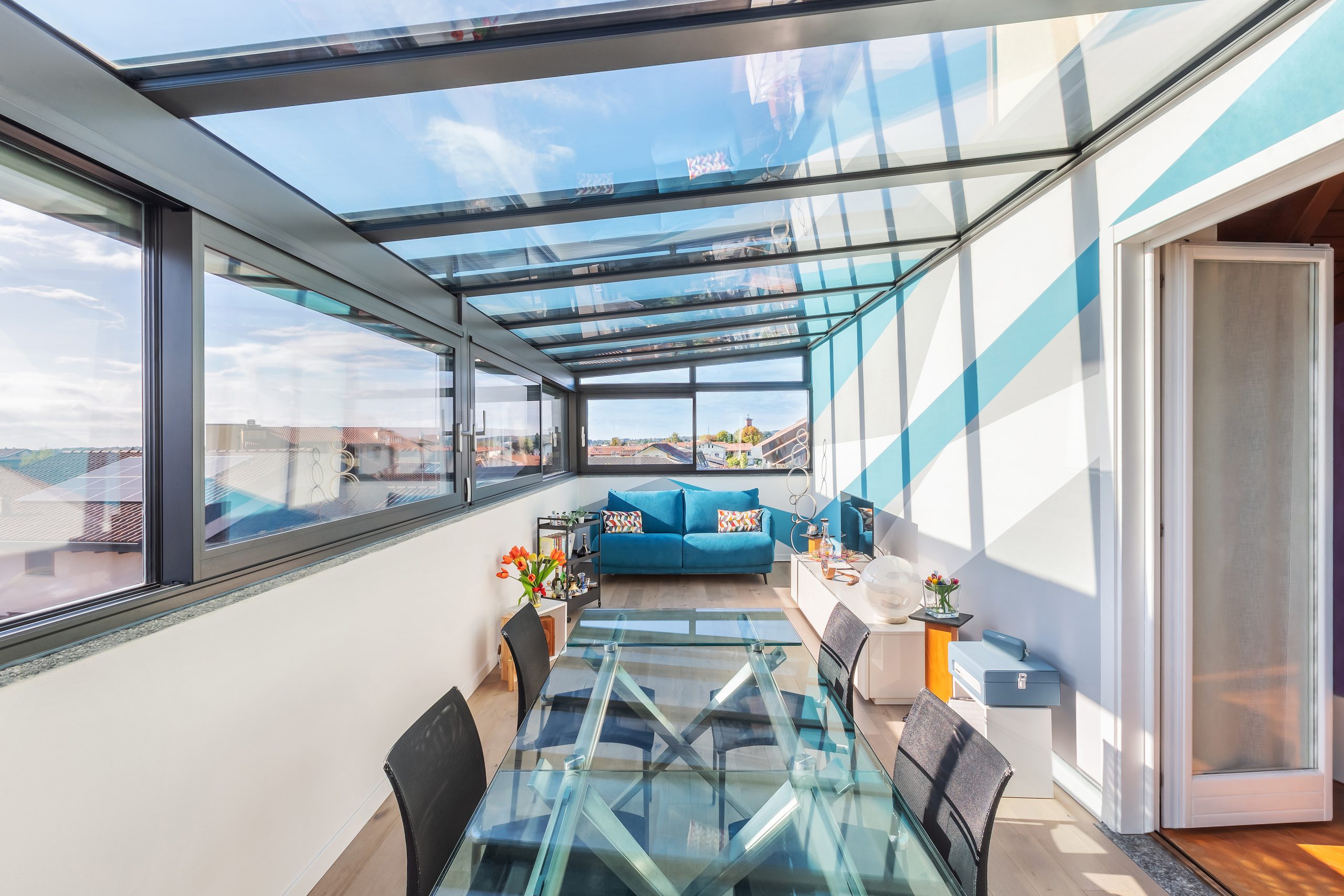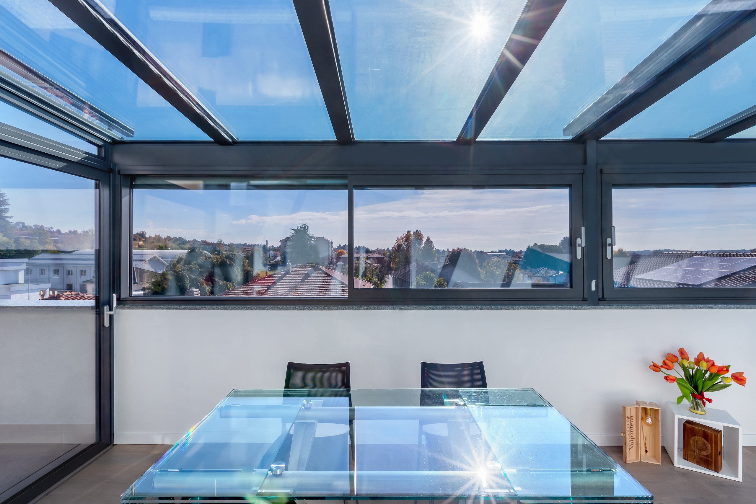 BT Glass ha realizzato a Tradate, in provincia di Varese, una serra bioclimatica G120 che trasforma un terrazzo all’ultimo piano in uno spazio vivibile tutto l’anno. La struttura, larga 8 metri e profonda 3, con altezza di 2,4 metri, è costruita con profili in alluminio a taglio termico e ospita sei serramenti Schüco serie G50 (AWS 65), garantendo prestazioni elevate di isolamento termoacustico. La copertura in vetro camera triplo e le tende integrate, sia sul tetto sia sui fronti vetrati, consentono un controllo preciso dell’irraggiamento e del microclima interno. Il progetto è stato seguito dal Project Manager Serre di BT Glass, con il supporto dell’ufficio tecnico e della squadra interna di posatori, per assicurare cura sartoriale dei dettagli e qualità esecutiva. Il risultato è uno spazio luminoso, immersivo e perfettamente integrato con il paesaggio, come confermato anche dai committenti, che sottolineano la capacità dell’azienda nel trasformare il terrazzo in un living esclusivo fruibile in ogni stagione. L’intervento riflette la filosofia BT Glass, orientata a coniugare trasparenza, luce e benessere abitativo, grazie a soluzioni su misura e a un controllo diretto dell’intero processo produttivo.