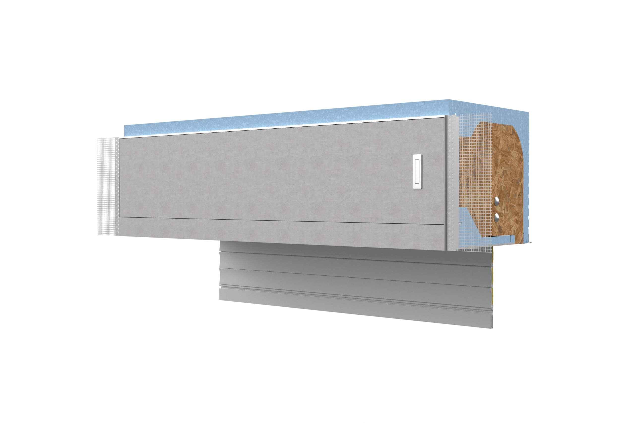 Il sistema si integra perfettamente nella parete grazie alla finitura in fibrocemento tinteggiabile, che permette di uniformare colore e texture con cartongesso o intonaco. La presenza di un profilo laterale con rete assicura un raccordo impeccabile con la muratura, accentuando l’effetto di totale mimesi. A questo si aggiunge la comodità dell’ispezione frontale, che rende più rapide e non invasive le operazioni di manutenzione dell’avvolgibile, migliorando usabilità e comfort.