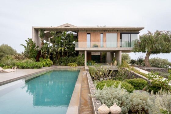 Firmata da Puleo Architettura, la residenza nasce dalla trasformazione di una dimora preesistente, della quale mantiene l’impianto originario, sviluppandosi su tre livelli attorno a un patio centrale aperto verso il giardino e la piscina. L’edificio, libero su tutti i lati, instaura un dialogo costante con il contesto naturale della costa orientale siciliana, grazie a un’organizzazione spaziale che privilegia la continuità visiva tra interno ed esterno.