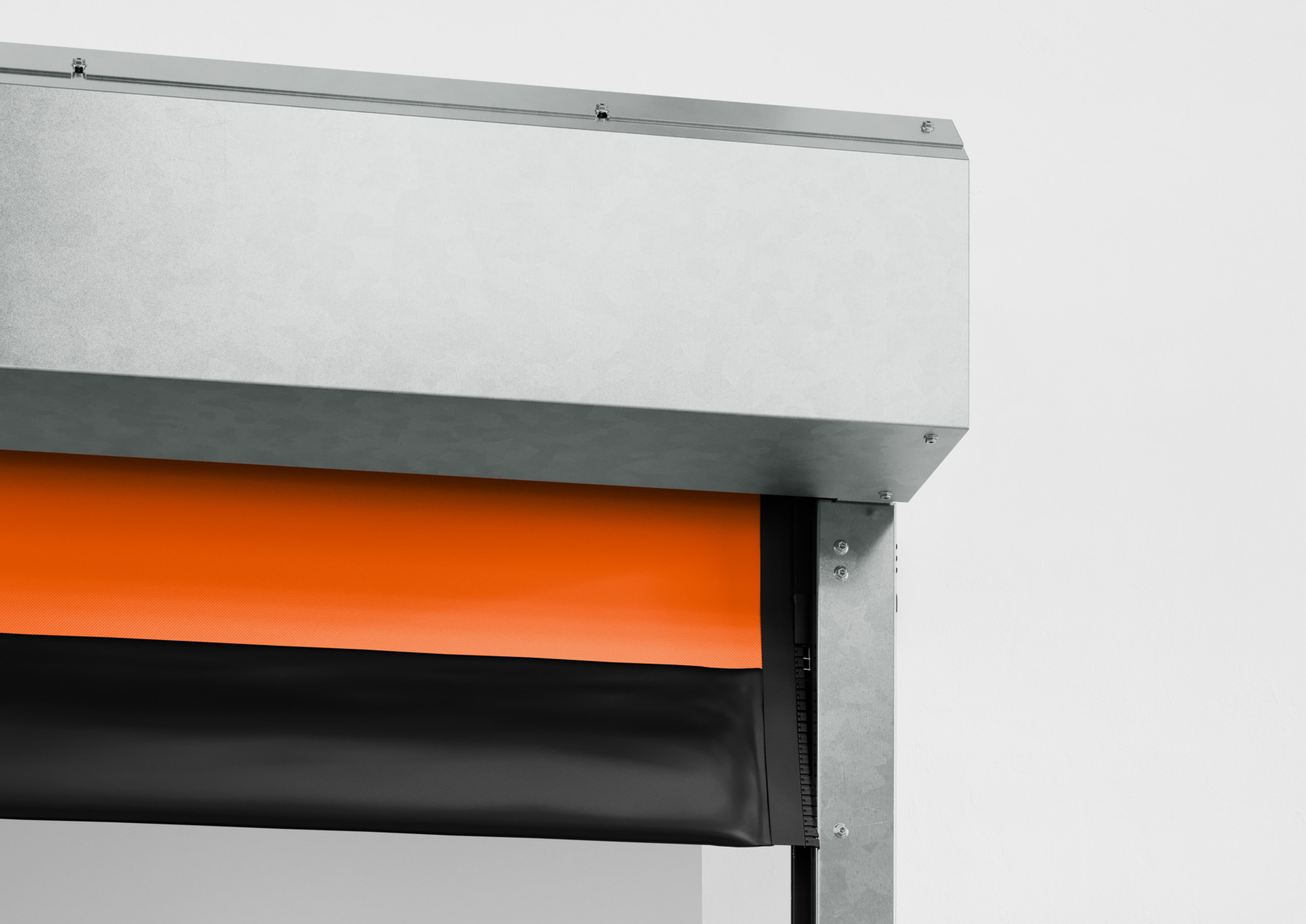 Elemento distintivo del nuovo modello è l’innovativa tecnologia Zipper, che consente al telo della porta di reinserirsi automaticamente nelle guide laterali dopo un impatto, senza necessità di intervento tecnico. In caso di collisione, ad esempio con un carrello elevatore, il telo fuoriesce dalle guide, ma al successivo ciclo di apertura i cursori in plastica si reintegrano come una cerniera, ripristinando immediatamente la piena funzionalità della chiusura. Una soluzione che riduce drasticamente i tempi di fermo e i costi di manutenzione.