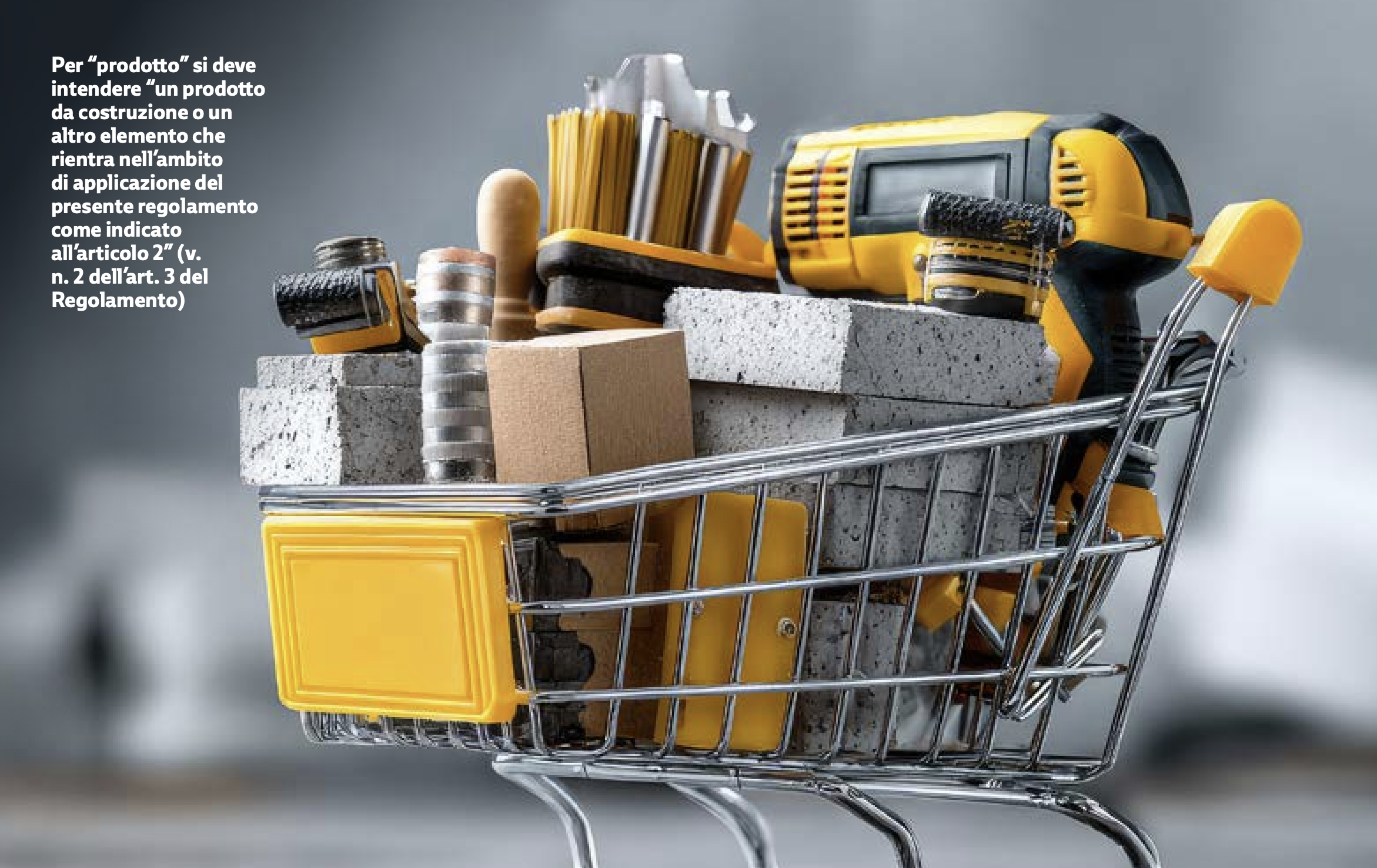 - per “prodotto” si deve intendere “un prodotto da costruzione o un altro elemento che rientra nell’ambito di applicazione del presente regolamento come indicato all’articolo 2” (v. n. 2 dell’art. 3 del Regolamento).