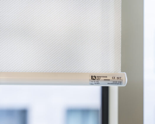 In questo contesto si inserisce la fornitura di 140 schermature solari automatizzate firmate Resstende, installate dal piano terra al quinto piano dell’edificio. Il sistema scelto è F110 con profilo di premontaggio e fondale F21, con finitura RAL 9010, integrato all’interno di una gola rivestita in lamiera di alluminio per garantire una soluzione discreta e perfettamente coordinata con l’architettura degli interni.